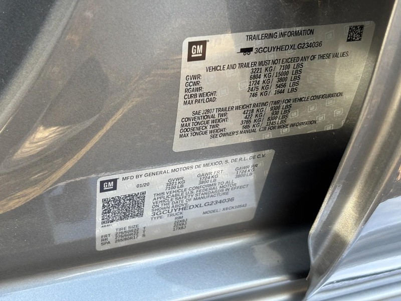 - VIN : 3GCUYHEDXLG234036