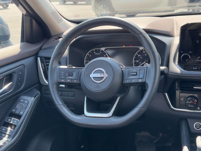 Gun Metallic 2023 Nissan Rogue **ONE OWNER, NO ACCIDENTS!**, **CARBRAVO CERTIFIED!**, 19" Aluminum Alloy Wheels, Auto High-beam Headlights, Bose Premium Audio System, Heated front seats, Heated steering wheel, Memory seat, Motion Activated Power Liftgate, Navigation System, Power Liftgate, Power moonroof, Rear Parking Sensors, SL Premium Package, Tri-Zone HVAC. 28/34 City/Highway MPG