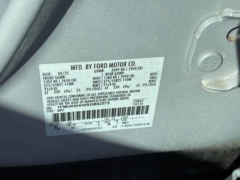 - VIN : 1FMUK8HH0SGB62575